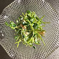 - 1 豆苗は根元を切り落とし、豆を取り除き、3cm幅に切ります。