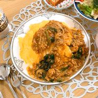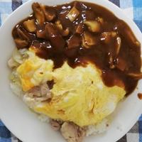 電子レンジで簡単に仕上げたきのこカレーと、バターチキンライスで作るオムカレーのご紹介です。カレーとチキンライス、とろとろ卵がとても合いますよ。プレーンな物とはひと味違ったオムライスを、ぜひお試しくださいね。
