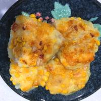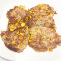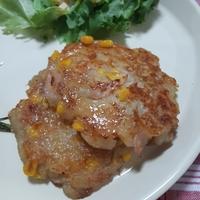 ハムとコーンのじゃがもちをご紹介します。すりおろしたじゃがいものもっちりとした食感と、コーンの甘み、ハムやチーズの塩気がよく合いますよ。ぜひお試しくださいね。