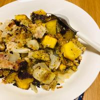 じゃがいもの代わりにさつまいもで作りました。さつまいものほのかな甘みが以外とパン粉ソースと合いました!追加でマッシュルームを入れても美味しそぉです( ¨̮ )