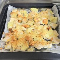 パン粉とオリーブオイル、ガーリックソルトを混ぜたものをかけただけです。レシピの工程を省いていますが簡単においしくできました。オーブンは200w20分で火が通っていました。