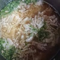 - 4 えのきが軽くしんなりしたら、水を加えて中火でひと煮立ちさせます。