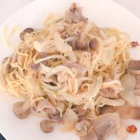 麺がほぐれにくかったので、白ワインを少し加えました。シンプルな調味料ながらしっかりと塩気がきいてて美味しかったです。