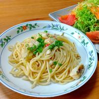 小さめのレモン1個分の果汁使用、鶏がらスープの代わりにフュメドポワソン使用、料理酒無し、茹で汁追加。パスタの茹で上がりの1分前に春キャベツも入れてます。