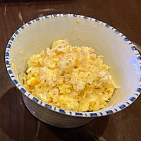 - 4 ゆで卵はボウルに入れてフォークで粗く潰します。
