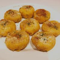 居酒屋さんの定番メニュー!いも餅をカボチャで! 中のチーズがとろーり溶けて、甘しょっぱくて、病みつき間違いなしです! お酒にも合うのでぜひ試してみてください。 お好みで、最後上にバターをのせてもおいしいです。