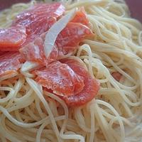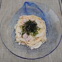 写真ではわかりませんが、生とスモークを混ぜて作りました。大葉と海苔をトッピング。レモン汁やや多めにしたので、濃厚クリームでも、さっぱり美味しくいただきました。