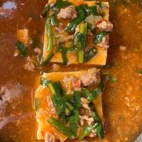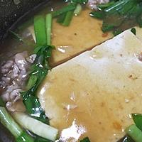豆腐崩したくなかったので片栗粉で餡した後に、豆腐投入。辛くないので、スープ麻婆的な感じ。。