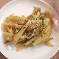 今回はフライパンで炒めて作りました‼︎ピリッとしてるけど、マヨネーズが絡まってちょうど良い辛さになって、とっても美味しいです!