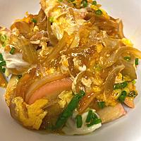 甘い玉ねぎと旨味のあるかまぼこが合う!卵もトロトロ半熟で優しい味。