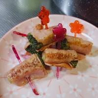 - 3 2を薄切りロングベーコンで巻き、楊枝を刺します。
