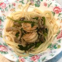 ぷりぷりエビとシャキシャキチンゲン菜美味しい🎶