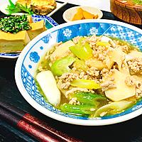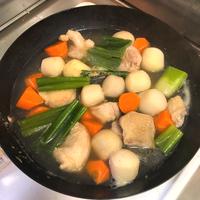 - 3 里芋がやわらかくなったら1の長ねぎを加え5分中火で煮込みます。