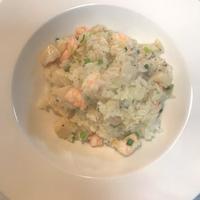 シーフードミックス、ベーコン、ピーマンを追加で👍簡単に出来ました❣️ピラフの様な味で気に入りました💕リピ決定です✌️