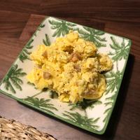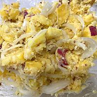 タマネギは水にさらして苦味を取り、炒めたベーコンを追加して作りました。