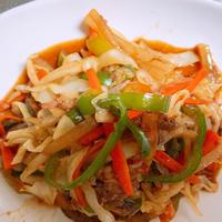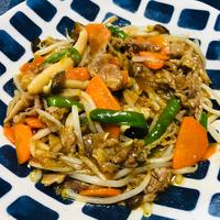 牛肉が少なかったので春雨ともやしでかさ増し!オイスターソースが効いて味付けがとっても美味しい❣️