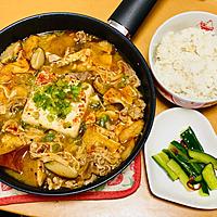 ピリ辛の旨味たっぷりなスープが特徴で、豆腐と豚肉の相性抜群です。長ネギやしめじ、えのき、椎茸などのきのこ類を追加すると、さらに具沢山な一品に。辛さは豆板醤で調整でき、最後に香り高いごま油をふわっとかけると風味がアップ。シメはご飯を入れて卵でとじた雑炊や、うどんを入れても美味しく楽しめます。冷蔵庫の残り野菜を一掃できる便利さも魅力的です。