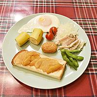 完全にアップルパイのりんごの味。普通の6枚切り食パンですが…前日に作り置きして朝乗せて焼いて、コーヒーにも合うし最高です