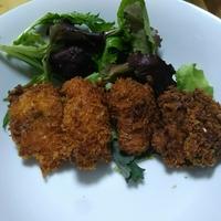 - 4 フライパンにサラダ油を入れ、180℃になったら3を入れて両面がきつね色になるまで揚げます。