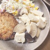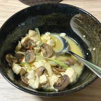 - 1 マッシュルームを食べやすい大きさに切り、豆腐は1センチ角に切ります。