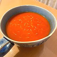 魔女が作ったような真っ赤なスープをご紹介します。トマトの酸味と炒めた玉ねぎの甘みが相性よく、見た目だけでなく味も絶品です。ハロウィン気分が盛り上がる一品ですよ。