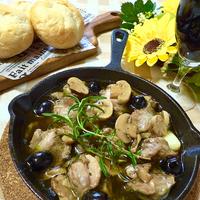 アヒージョと相性のいい砂肝とブラックオリーブで◎美味しさアップ♡