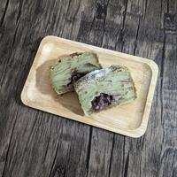 もちもちの生地とほくほくのさつまいもが層になった和スイーツです。抹茶の深い風味と小豆の優しい甘みが絶妙なハーモニーを奏でます。生地はしっとりとした羊羰のような食感で、簡単な作り方なのにとても凝った印象に仕上がります。材料は主にさつまいも、抹茶パウダー、バター、卵を使用。一晩置くと味が馴染んでより美味しくなるので、作り置きにもおすすめです。