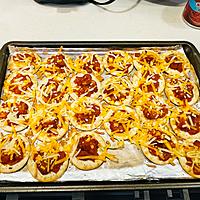 - 6 クッキングシートを敷いた天板にクラッカーを並べ、5を塗り広げ、3とピザ用チーズをちらして200℃のオーブンで10分焼きます。