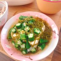 暑い季節にさっぱり食べたい、豆腐とオクラ、めかぶの組み合わせです。作ってすぐ食べても美味しいですが、少し冷蔵庫におくことで味が馴染みますし、キリッと冷えて美味しくなりますよ。簡単ですのでぜひ作ってみてくださいね。
