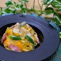 色んな食感が一度に楽しめるとっても美味しいパスタです♥