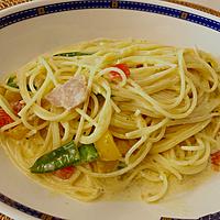 茹で時間はパッケージに記載されている時間を目安にして下さい。パプリカは赤パプリカにしてもお作り頂けます。スパゲティを入れたら、なるべくすばやく混ぜ合わせてください。