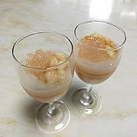 - 7 グラスに2の半量を入れ、1/3程の高さまで4を注ぎ、冷蔵庫で冷やし固めます。