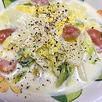 白菜が分量より少し多かったので、バターで炒めて小麦粉大さじ1&牛乳200ml、コンソメは小さじ1で調整しました!とろみがほしかったのでちょうど良く、美味しかったです。