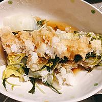 - 8 焼きあがった6に7をかけ、ポン酢をかけたらできあがりです。
