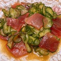 お酢に漬けたマグロはさっぱりしていてきゅうりと食べるととても美味しかったです!