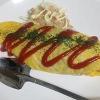 - 6 火から下ろし、同じようにもう1つ作ります。それぞれ別の器に盛り付け、ケチャップをかけて完成です。