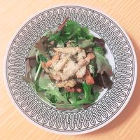 - 4 お皿にベビーリーフを盛り付けたら、3を乗せます。仕上げに粉チーズとオリーブオイルをかけて出来上がりです。