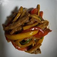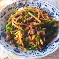 牛の細切れでつくりました。たけのこが無かったので人参を入れました。レンジでは無くフライパンで炒めました。