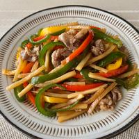 - 準備 ピーマン、赤パプリカ、黄パプリカはヘタと種を取り、千切りにしておきます。 タケノコの水煮は下ゆでしておきます。
