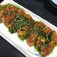 納豆3パック+梅干3個で大葉7枚分を作りました。子供も食べるのでカラシは入れず、梅干の風味が効いて焼き揚げた納豆に合い美味しかったです。あと一品にちょうど良いのでまた作ります。