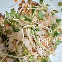 材料は、十分に揃ってたので… 粉チーズ入れ過ぎたかな?少ししょっぱく感じたので、大好きな大根おろしとカイワレをトッピングしていただきました😄 味も丁度良くなり、とても良いレシピを教えて貰ったなぁ~、と感謝です 定番レシピにしたいと思います。