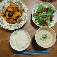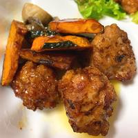 かぼちゃと豚こま肉の唐揚げ ハニーマスタードソース レシピ・作り方