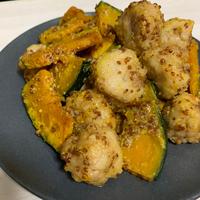 かぼちゃの揚げ具合がわからなくて少し焦げちゃった。マスタードは絶対に粒タイプを使うべし。