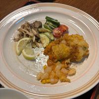 かき揚げみたいになった 欲張ってエビ200g、ミックスベジ50gと具を入れ過ぎたのが主因のようだ キノコ、ズッキーニ、長ネギの素焼き、それと本体から崩れでたプリプリエビを添えて場を凌いだ やれやれ