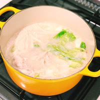 - 5 3を入れて中火で熱し、豚バラ肉と2を入れ、肉に火が通ったら器に取ります。
