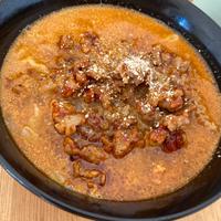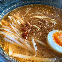とっても辛い激辛担々麺です。 豆板醤・ラー油のヒリヒリした辛味と、山椒の痺れる辛さが、濃厚なごまの旨味と、とてもよく合います。 豆乳を入れるとより濃厚でマイルドな味わいになります。 残ったスープにご飯を入れても、とても美味しいですよ。