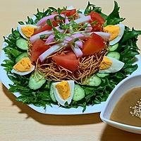 胡麻ドレッシングが 野菜とパリパリ麺に絡んで いつものサラダとは 別物感覚で 美味しかったです!