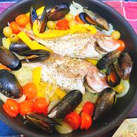 魚介の旨味とニンニクの香りが食欲をそそる本格イタリアン。黒鯛やタラ、シーフードミックスなど好みの魚介を選べ、ローズマリーやパプリカ、きのこ類を加えると彩り豊かに。簡単な調理で素材の旨味が凝縮された一品に仕上がります。蓋をして蒸し焼きにすることで魚がふっくら柔らかく、野菜からも出汁が溶け出してスープまで美味しくいただけます。おしゃれな見た目でおもてなしにもぴったりです。