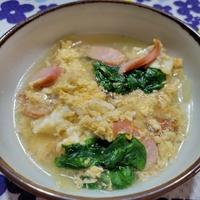 卵スープにサラダ菜を加えました。クセがなく食べやすいサラダ菜は、さっと火を通すだけなので、食感も残っていてとてもおいしいですよ。さっとお作りいただけますので、朝ごはんや昼ごはんの一品にもピッタリです。