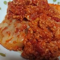 大根の消費に☺️大根の煮物が私も息子もあまり得意ではないので、好きなミートソースとチーズとの事でチャレンジ❗